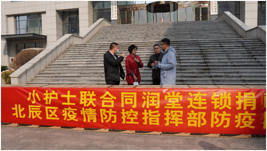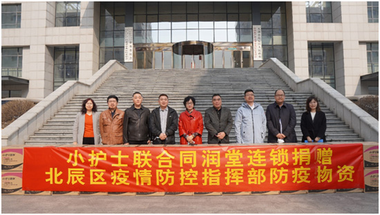 3月10日上午,捐贈儀式在北辰區(qū)政府舉行,出席儀式的有北辰區(qū)副區(qū)長馬希榮、區(qū)防疫工作指揮部組長竇百鳴、區(qū)防疫工作指揮部辦公室主任楊肖鴻、小護士公司董事長楊印江、同潤堂連鎖總經(jīng)理楊懷亮、小護士公司董事會秘書董曉光、小護士公司人資行政總監(jiān)方立勝。