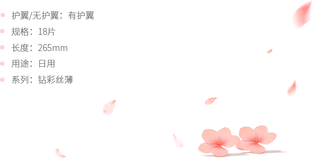 鉆彩絲薄265mm18片干爽日用加長(zhǎng)衛(wèi)生巾